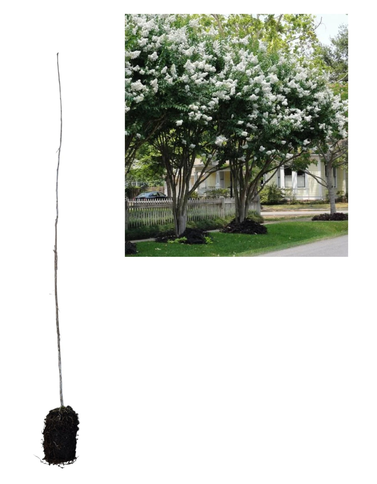 Lagerstroemia indica albă, cunoscută și ca liliac indian alb, este un arbust ornamental sau arbore mic foarte apreciat pentru florile sale spectaculoase, albe, care apar vara și rezistă până la începutul toamnei. Planta are o coroană elegantă și frunze verzi lucioase care toamna capătă nuanțe decorative.