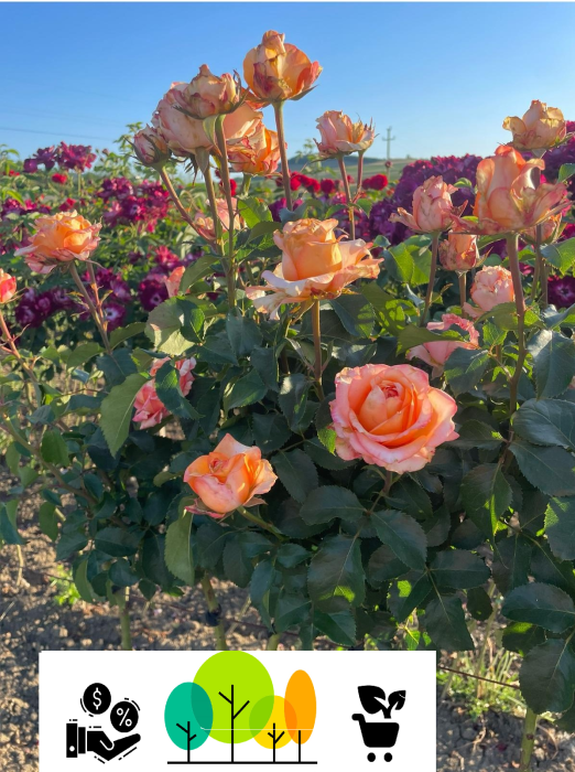 Trandafirul este altoit pe un trunchi vertical, înălțime de 1‑1,5 m pentru trunchi + coroana florilor.